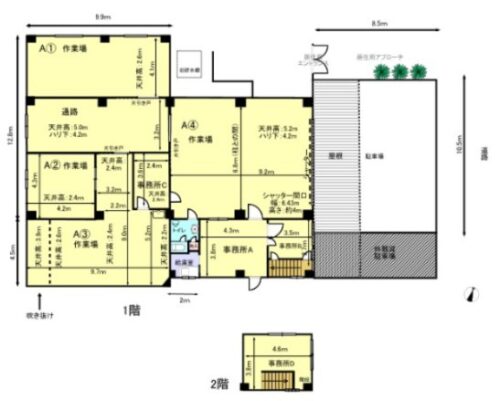 | 備考 | *倉庫部分高さ4m以上 *駐車場有(6台以上可) *契約期間 2年 *家賃保証会社・連帯保証人・借家人賠償保険必須 *電動シャッター以外すべて残置物 残置物扱いの空調有 *コンテナトラックの積み下ろし等については 事前に行政機関に問合せ要 *造作壁の撤去については応相談(費用負担等) *現況有姿 |