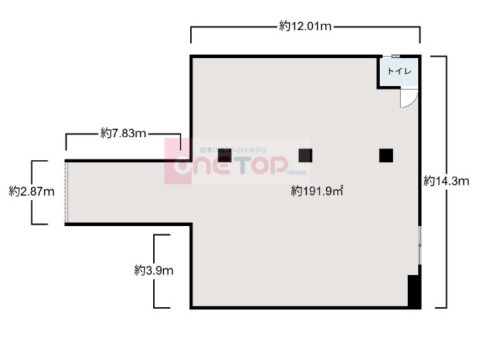| 備考 | *建物の1階部分の一部(図面参照) *現状有姿 *フォークリフト貸し出しOK *契約期間2年 *火災保険加入要 SBI日本少額短期保険 *保証会社加入要 ジェイリース 保証料100% |