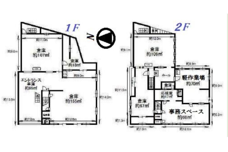 | 備考 | *現況空家 *契約期間2年(更新有り) *残置物 エアコン3台、電動シャッター、照明器具、トイレ、湯沸かし器等 *リフト有り(残置物) *事務所有り *駐車スペース有り *図面と現況が異なる場合は現況優先 *令和7年8月に一部トタン屋根補修工事完了済み *1988年5月 増改築 一部未登記部分有り *工場使用は不可 *火災保険加入要 *保証会社加入要 |