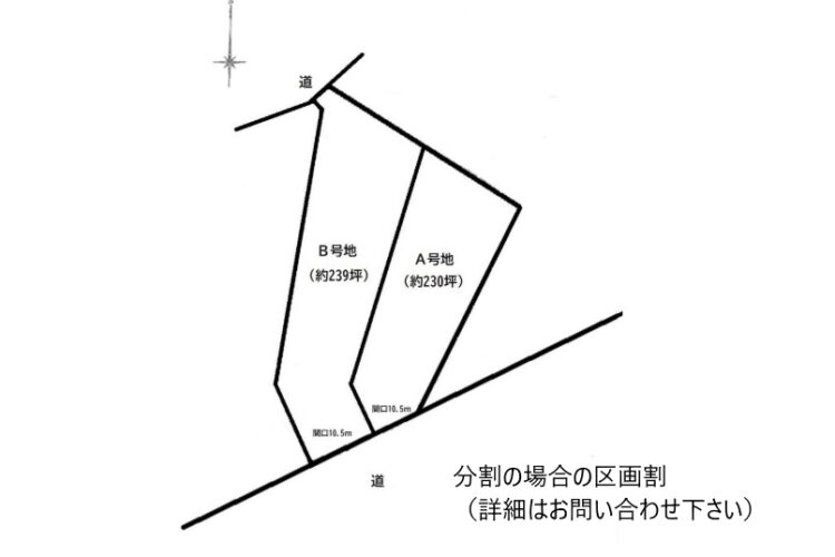 | 備考 | *現況更地 *建ぺい率60%、容積率200% *旧国道170号線に間口21m *準防火地域 *分割可(画像参照) *徒歩2分にデイリーヤマザキ |