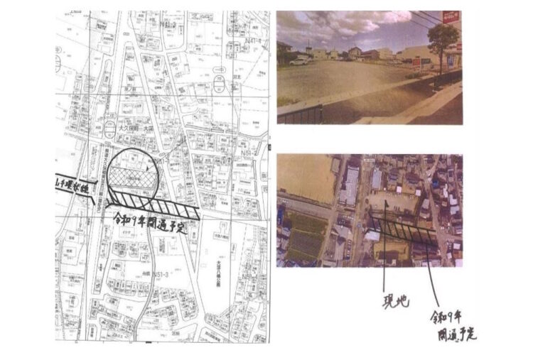 | 備考 | *前面道路から30mまでが第二種住居、それ以降が第一種住居 *前面道路に150mmの水道管有 *1912-1、1913の間に水路有 *水路敷上は建築不可 *山手環状線(東側)令和9年開通予定(道沿いになるかは未定) *分割可 *ローソン 徒歩2分 |