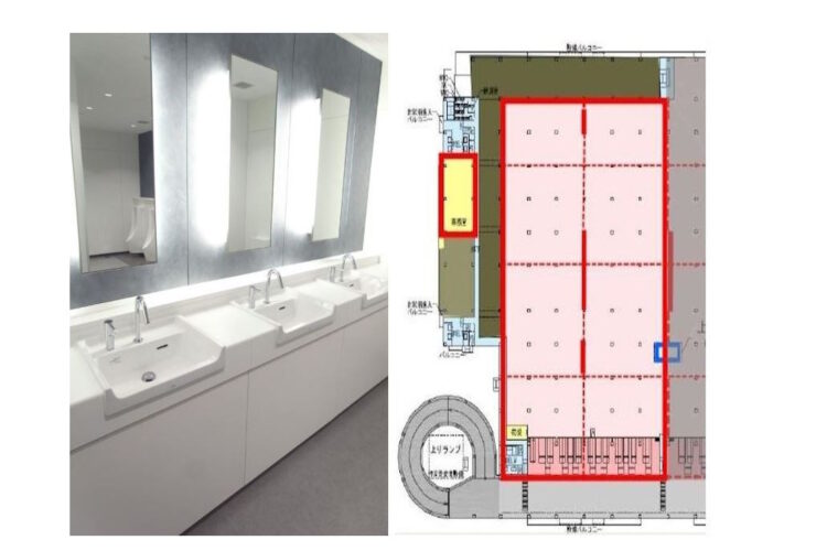 | 備考 | *転貸借契約。定期借家契約(2030年10月31日迄) *大型トラック搬入可 *駐車場要相談 *男女別共用トイレ *土日祝日利用可 *カフェテリア、女性用パウダールーム、託児所、駅直通専用バス、コインシャワー、コンビニ、フットサルコート等共用施設充実 *複合商業施設 ama doまで 徒歩1分 |