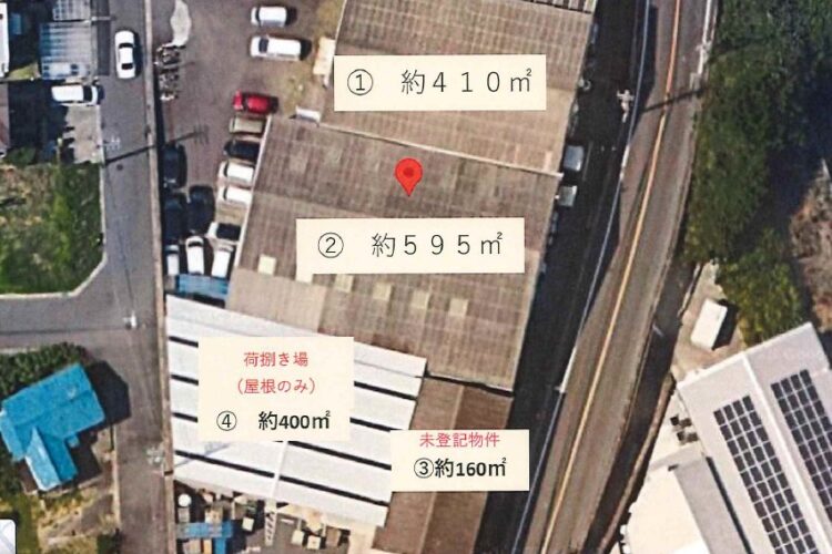 | 備考 | *現況空家 *契約期間3年 *建物3棟+屋根付き荷捌き場(画像参照) *建物の内約162㎡は未登記 *駐車場有り *現状有姿 *賃貸保証会社加入要 保証料賃料1ヶ月 *借家人賠償付き火災保険加入要 |