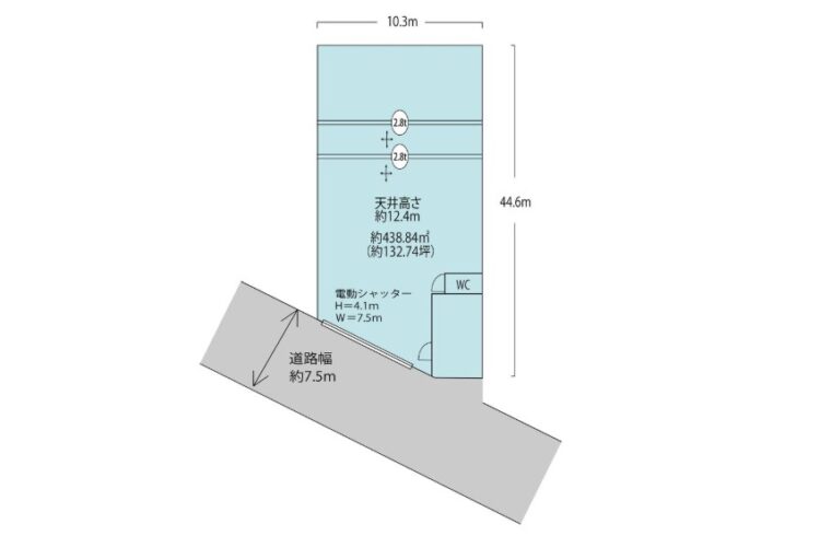 | 備考 | *現況空家 *3階建の1階部分が対象 *現状有姿 *クレーン2.8t×2基有り *天井高さ:約12.4m *シャッター:H4.1m×W7.5m *借家人賠償付火災保険加入要 *家賃保証会社加入要 *徒歩1分にセブンイレブン *徒歩5分にスーパーマルハチ |