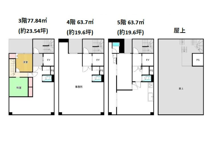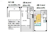 | 建物面積 | 地下1階:20.19㎡ 1階:88.29㎡ 2階:77.84㎡ 3階:77.84㎡ 4階:63.7㎡ 5階:63.7㎡ 合計:391.56㎡(118.44坪) |