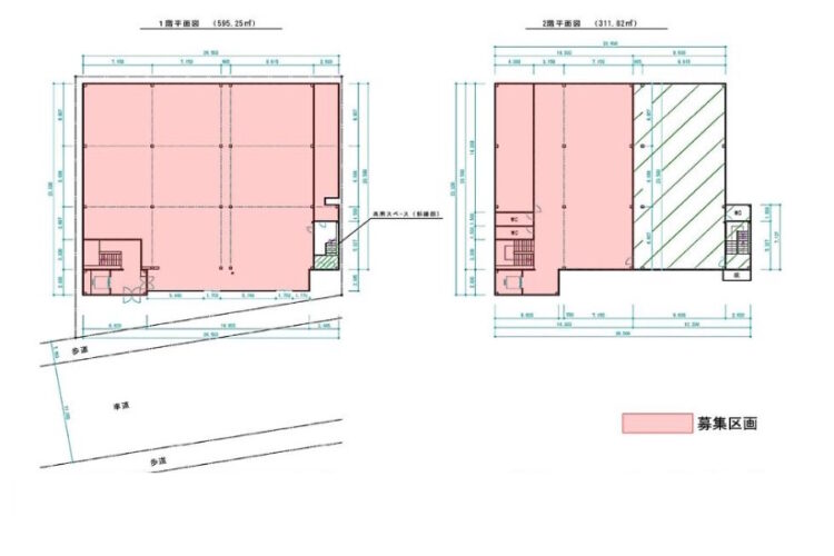 | 建物面積 | 3階建の1階部分と2階A棟が対象 1階:約595.25㎡(約180.06坪) 2階:約311.82㎡(約94.32坪) 合計:約907.07㎡(約274.38坪) |