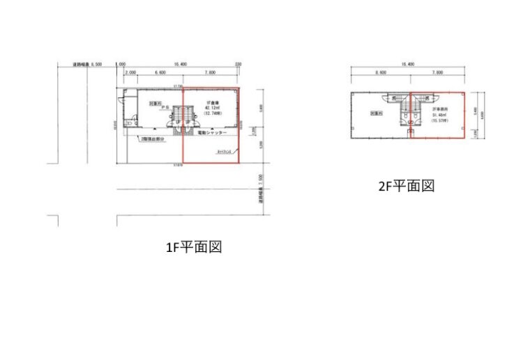 | 備考 | *現況使用中で引渡し時期は2026年7月上旬予定 *2棟建ての南側棟 *1F:電動シャッター 2F:個別空調、トイレ *駐車スペース有り(前面空地) *指定火災保険加入要 *入居にともなう改装工事は指定業者工事となります *別途水道代要(1,500円税別/月) *徒歩2分にファミリーマート |
