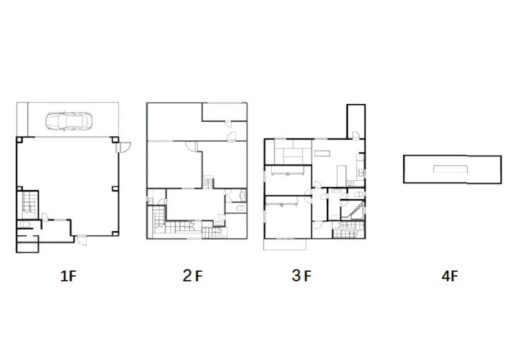 | 建物面積 | 1F:96.47㎡ 2F:113.86㎡ 3F:94.86㎡ 4F:26.04㎡ 延床面積:331.23㎡(100.19坪) |