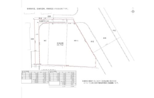 | 備考 | *現況更地 *契約期間2年(更新可) *三方道路 *近鉄大阪線線路沿い道路に面す *私道負担:107.45㎡(32.50坪) *準防火地域 *大型トラック進入可 *フェンス設置済み *資材置場、トラック置場、駐車場に *賃料応相談 |