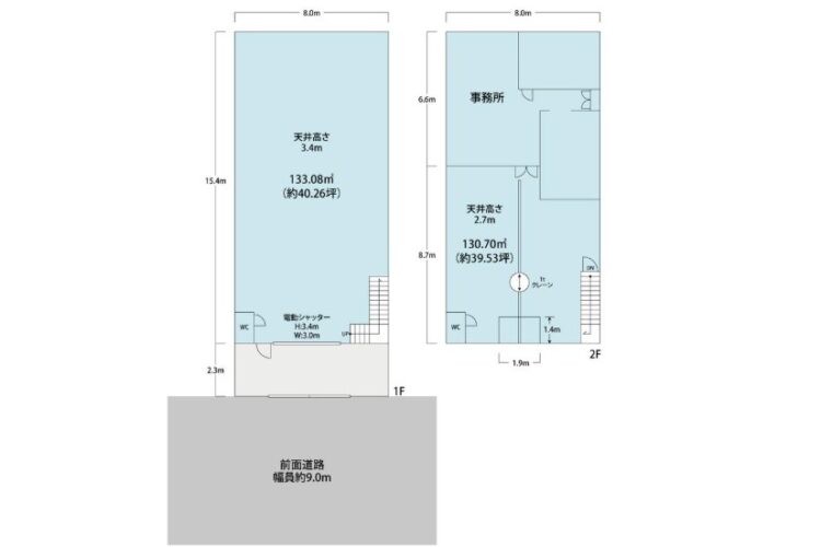 | 建物面積 | 1F:約133.08㎡(40.26坪) 2F:約130.70㎡(39.53坪) 合計:約263.78㎡(約79.79坪) |