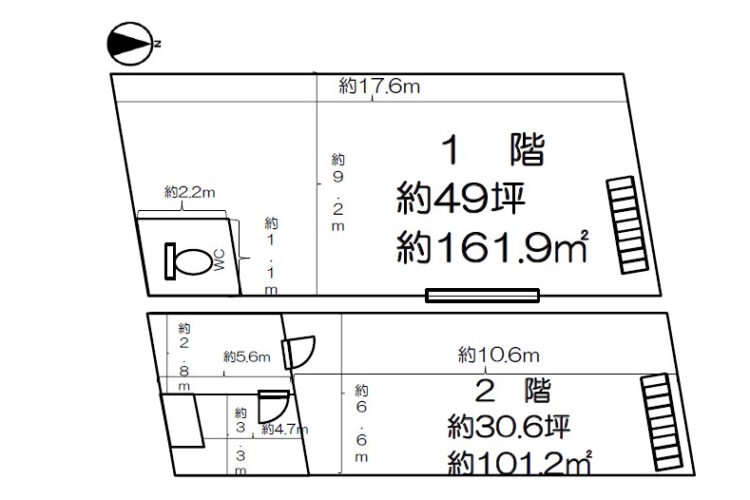 | 建物面積 | 1階:約161.9㎡ 2階:約101.2㎡ 延床面積:約263.1㎡(79.58坪) |