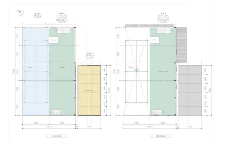 | 建物面積 | A棟1F:188.11㎡ A棟2F:94.05㎡ B棟:46.55㎡ 合計:328.71㎡(99.43坪) |