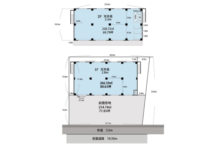 | 建物面積 | 1F:約268.80㎡ 2F:約235.20㎡ 合計:約504.00㎡(約152.45坪) |