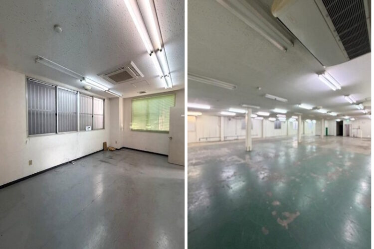 | 備考 | *現況空家 *契約期間3年 *1階天井高4.9m *荷物用リフト2基(積載荷重750kg、240kg) *駐車場5~7台可 *電動シャッター有り *保証会社加入要 *徒歩2分にファミリーマート *徒歩5分にメガドンキホーテ |