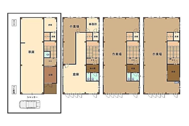 | 備考 | *現況空家 *建ぺい率60%、容積率200% *現況優先 *1階屋内車庫 97.20㎡(29.4坪) *前面空地駐車場有り *室内屋外合わせて約10台可能(車種による) *リフト有り *事務所有り *シャッター新品 *外壁正面塗装洗い済み *屋上有り *準防火地域 *容積率範囲内 *徒歩5分にファミリーマート *徒歩7分に万代 |