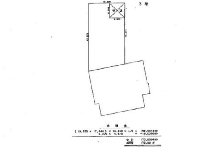 | 建物面積 | 1階倉庫:393.11㎡(118.91坪) 2階事務所:162.58㎡(49.18坪) 3階事務所:173.89㎡(52.60坪) 合計:729.58㎡(220.69坪) |