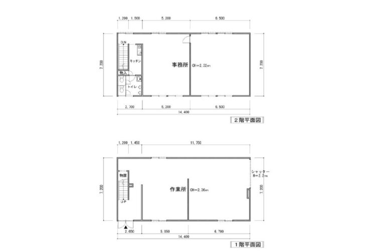 | 建物面積 | 1階倉庫:104.76㎡ 2階事務所:104.76㎡ 合計:209.52㎡(63.37坪) |