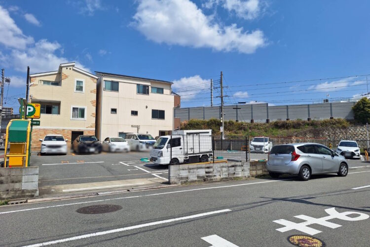 | 備考 | *現況アスファルト舗装駐車場 *事業用定期借地契約期間10年 *建ぺい率80%、容積率300% *三方道路の角地 *準防火地域 *徒歩4分に関西スーパー、コーナン *徒歩5分に阪急オアシス *営業所、店舗等建築用地に |