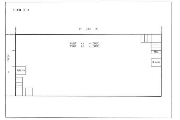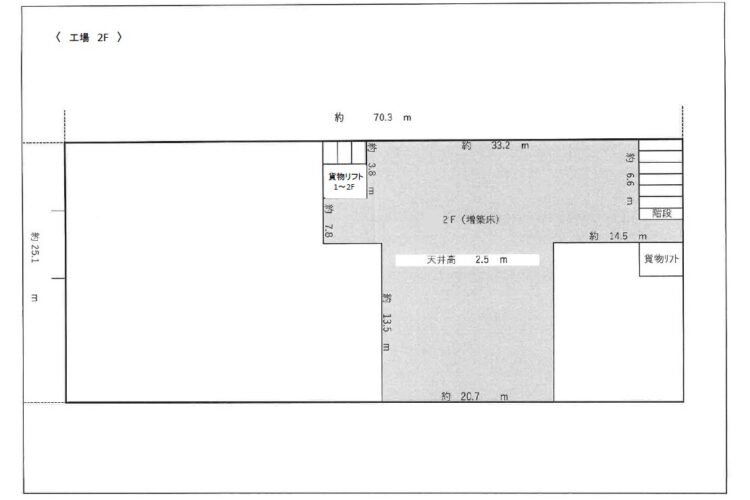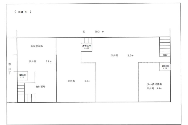 | 備考 | *現況使用中で引渡しは2026年8月以降相談 *①工場倉庫棟 ②事務所棟 *2.8tクレーン×1基、昇降機×3基 エアコン、キュービクル有り 全て残置物扱い *駐車場有り *準防火地域 *家賃保証会社加入要 *借家人賠償付き火災保険加入要 |
