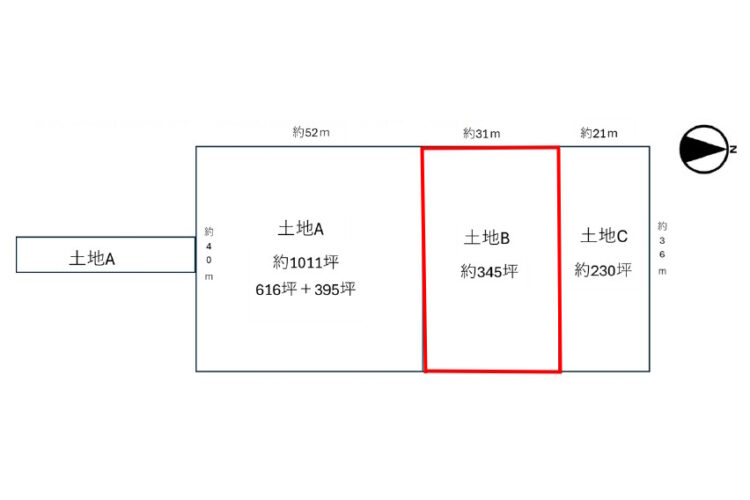 | 備考 | *現況更地 *アスファルト舗装工事中 *面積は概算 *図面は概略図に付き現況優先 *ABC一括賃貸も可能 *契約期間5年(5年以上の長期可) *市街化調整区域の為、建築不可 *敷地内電灯設置予定 *大型トラック駐車可 *資材置場、車両置場、駐車場に最適 *諸条件ご相談ください |
